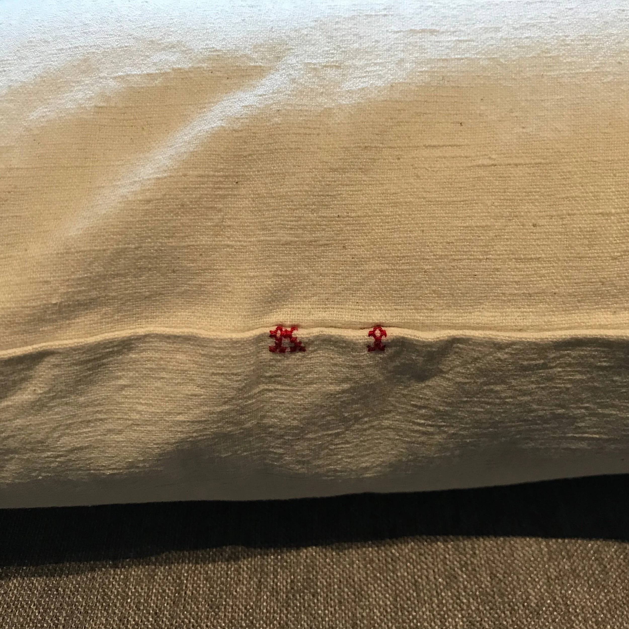 Housse de coussin 50x30 simple face fabriquée à partir de torchons anciens. Fermeture éclair invisible.