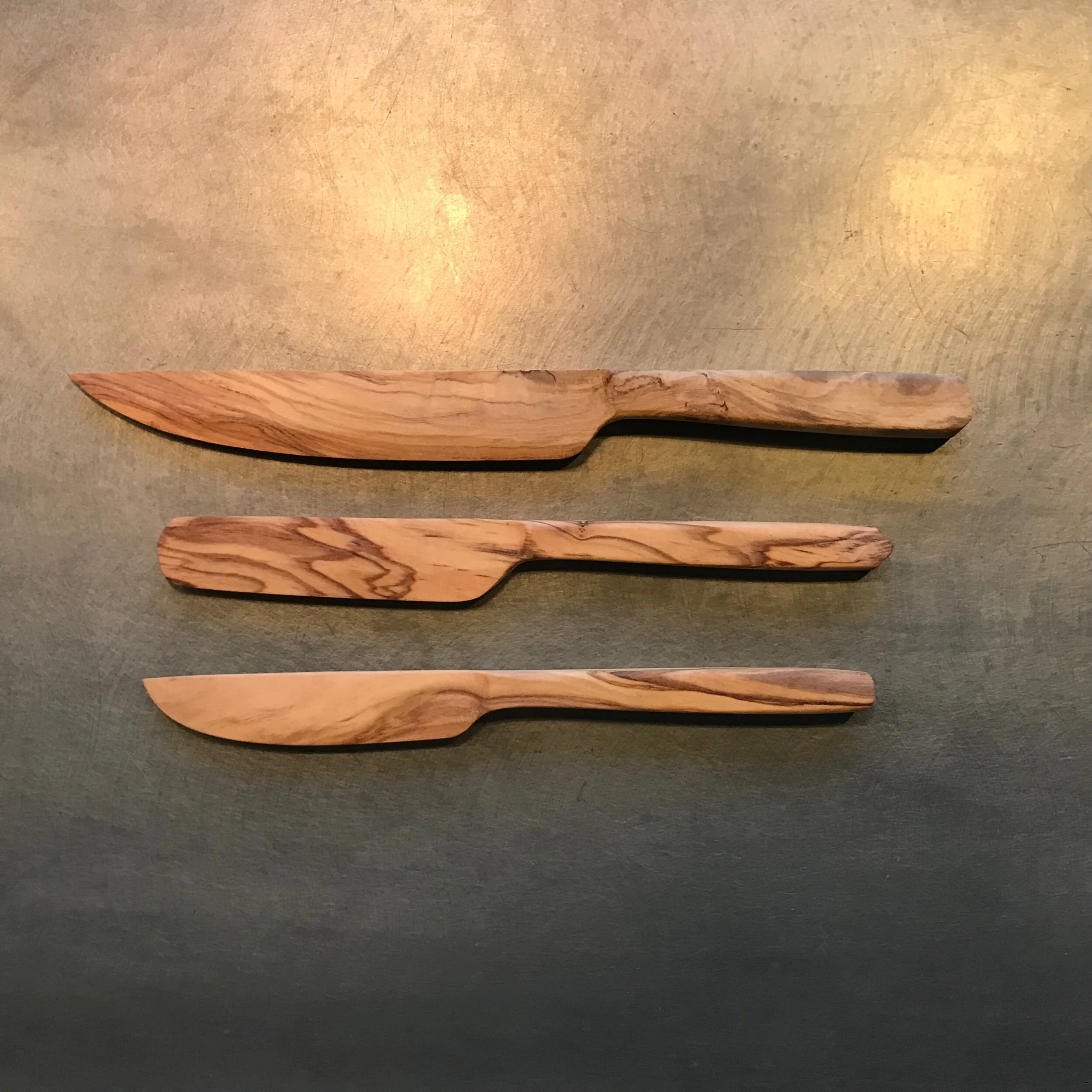 Couteau en bois d’olivier d’une vingtaine de cm fabriqué artisanalement.