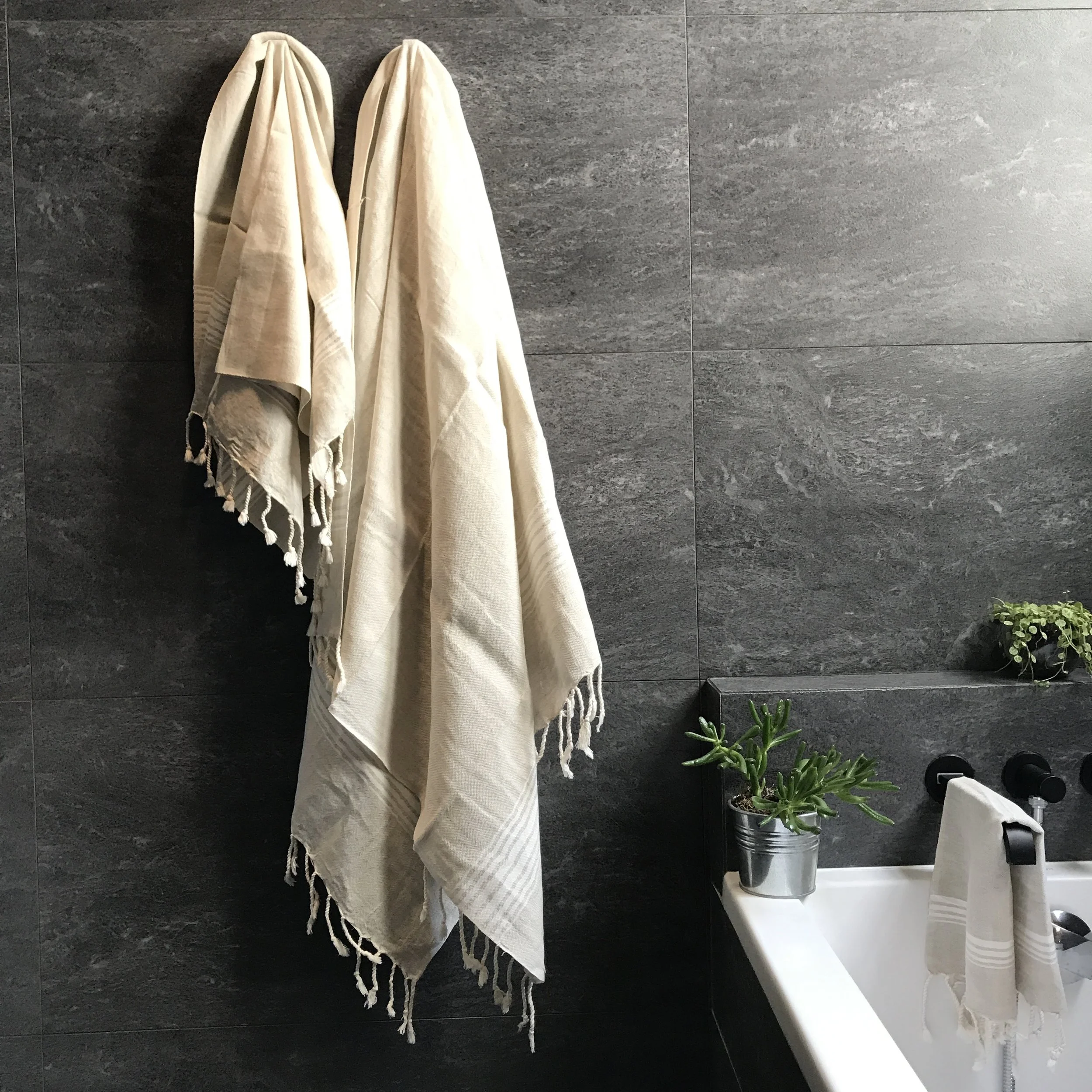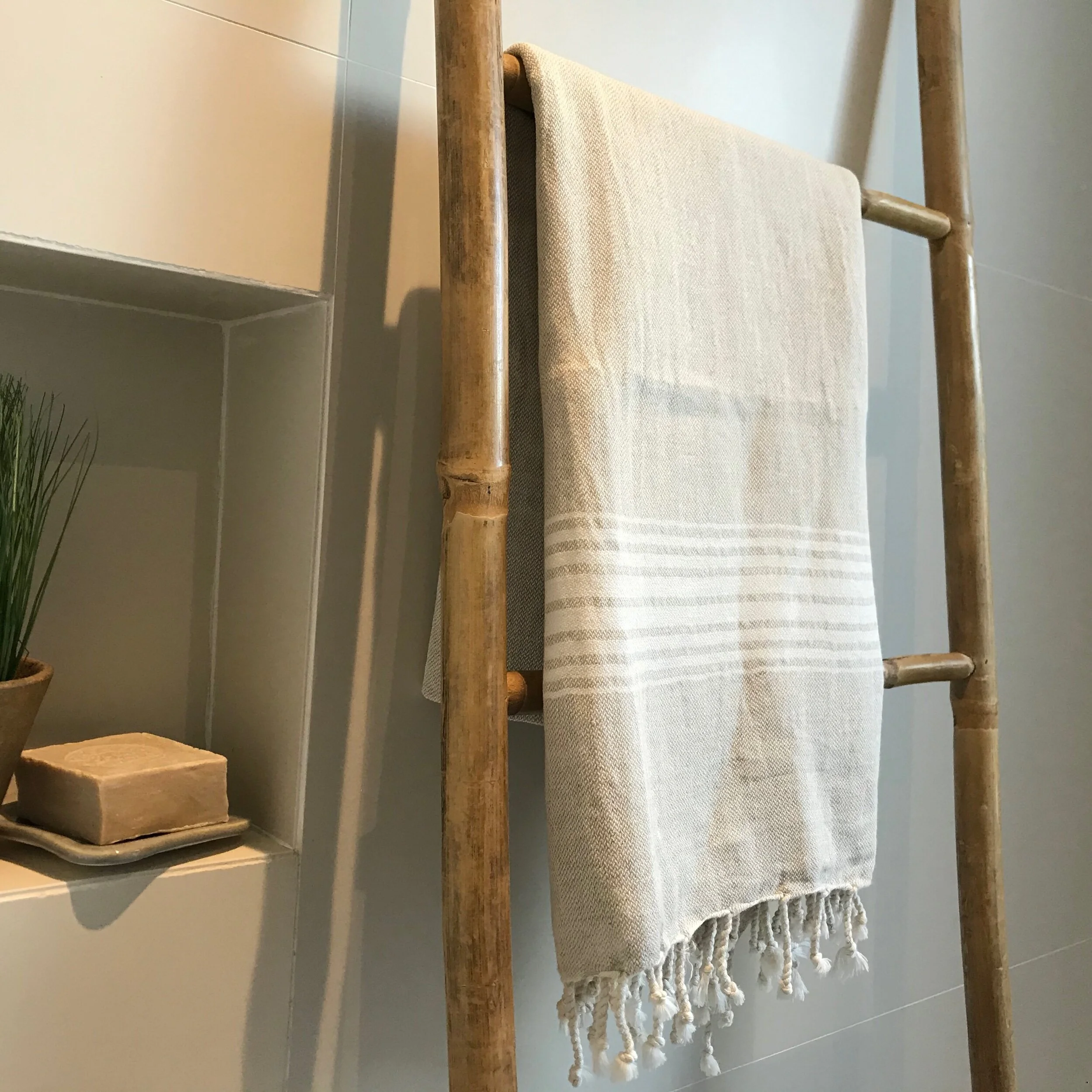 Serviette ou torchon 50% coton et 50% lin, tissé main de chez Yakto Ipek à Istanbul. Tissage artisanal.